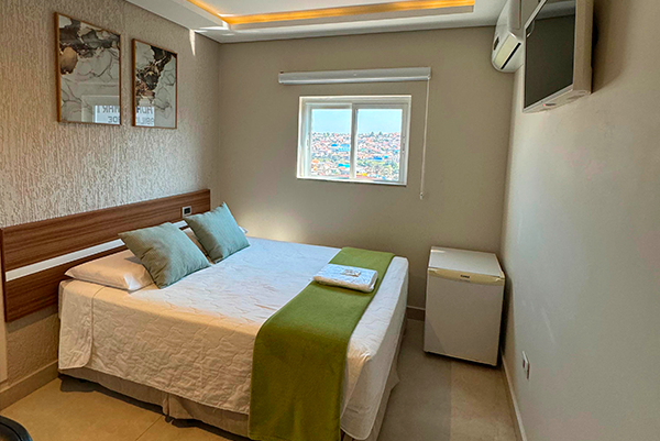 Descubra o Quarto Casal  do Hotel Imperatriz, onde cada detalhe foi cuidadosamente planejado para oferecer uma experiência de hospedagem verdadeiramente excepcional. Projetado para proporcionar o máximo de conforto e sofisticação, o Quarto Premium é a escolha ideal para quem busca uma estadia luxuosa e inesquecível em Telêmaco Borba.